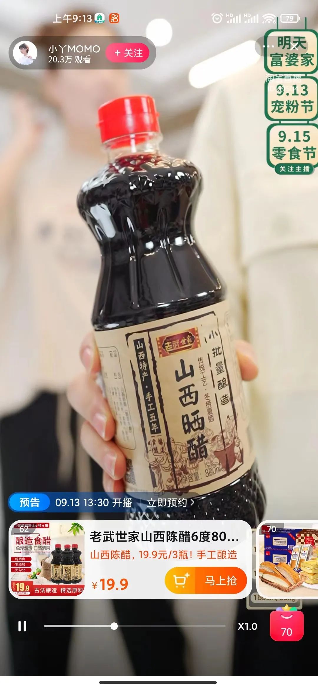 通过清徐乡村e镇电商公共服务中心链接各大优秀电商主播,不仅让网友认识到了更多中国醋都·清徐的优秀醋企,同时充分展现出清徐博大精深的醋文化以及发展蓬勃的醋产业。9月6日下午,来自淘宝平台的百万粉丝明星电商主播小丫MOMO携手清徐醋企老武世家的经典老陈醋产品,为广大粉丝带来一场丰富有趣的直播带货活动,共同领略清徐优秀醋企的匠心酿醋文化。
